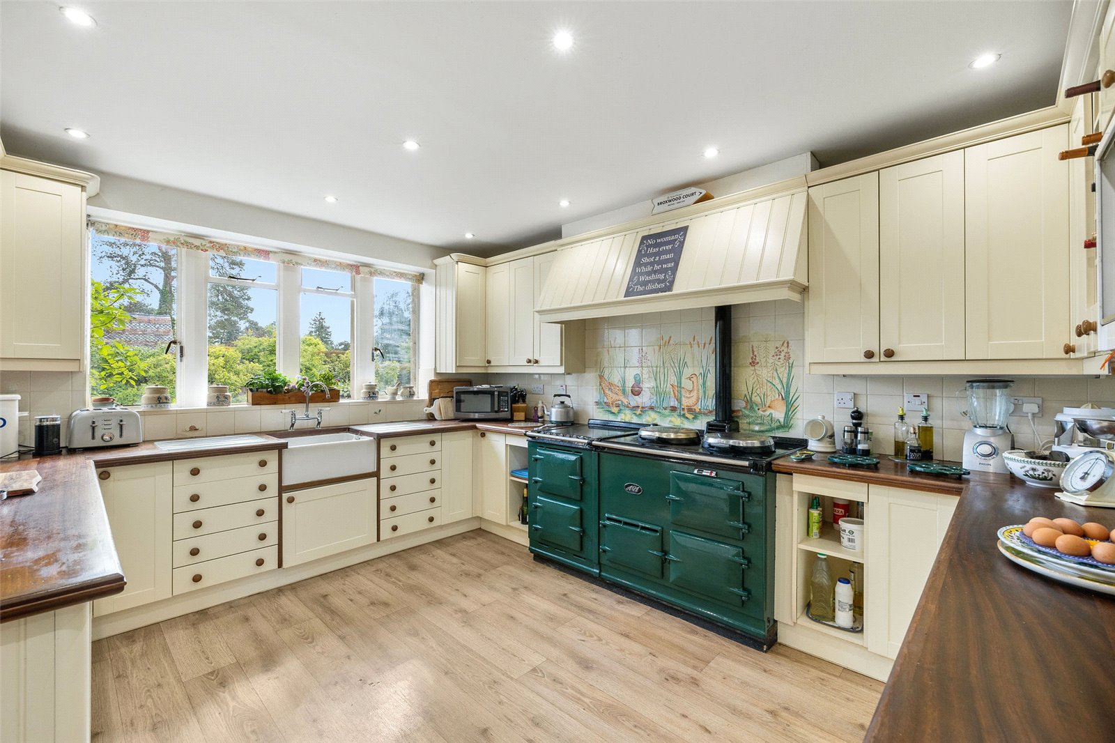 From the bright entrance hall are the drawing room, library and dining room. These formal rooms maximise the views of the gardens and grounds, with large windows and French doors from the drawing room opening onto a west facing terrace with views of Garnstone Hill and the Black Mountains. The more informal family friendly kitchen/diner is well appointed with the benefit of both a pantry and separate utility.