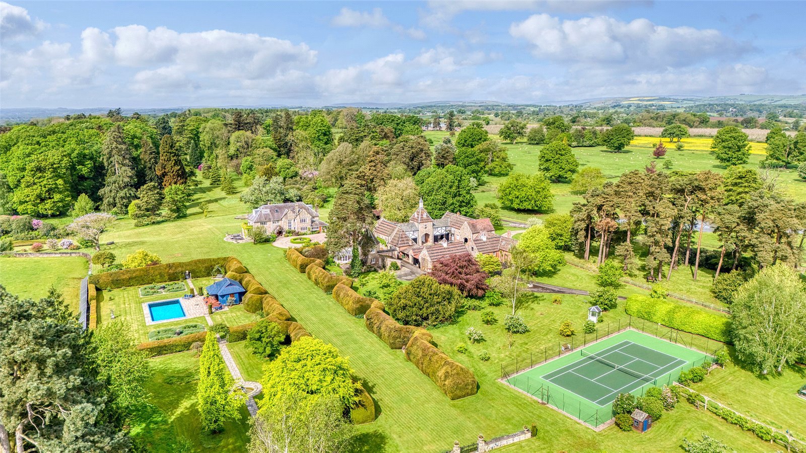 The formal gardens extend to approximately 33 acres and include a range of outbuildings, a lake, three large ponds, a swimming pool, a tennis court, a boat house, a summer house and a chapel.