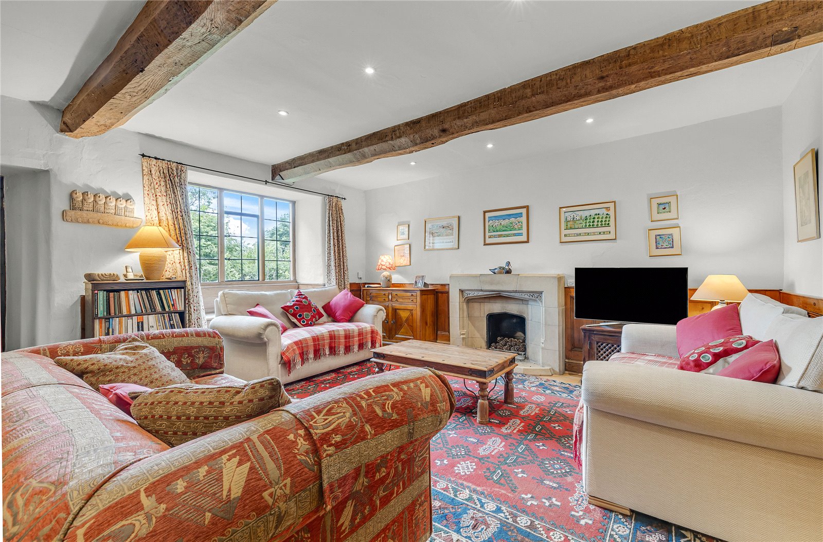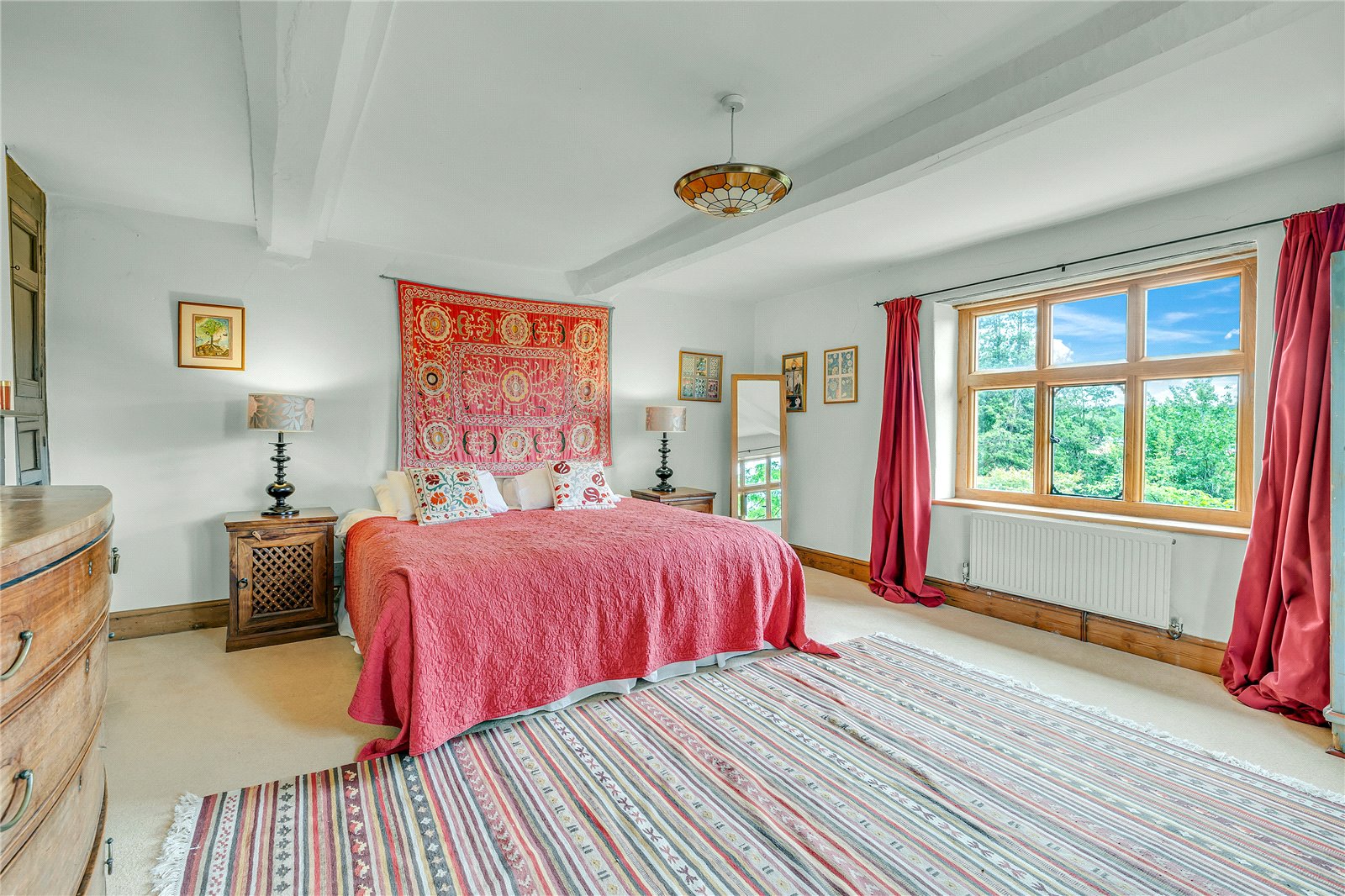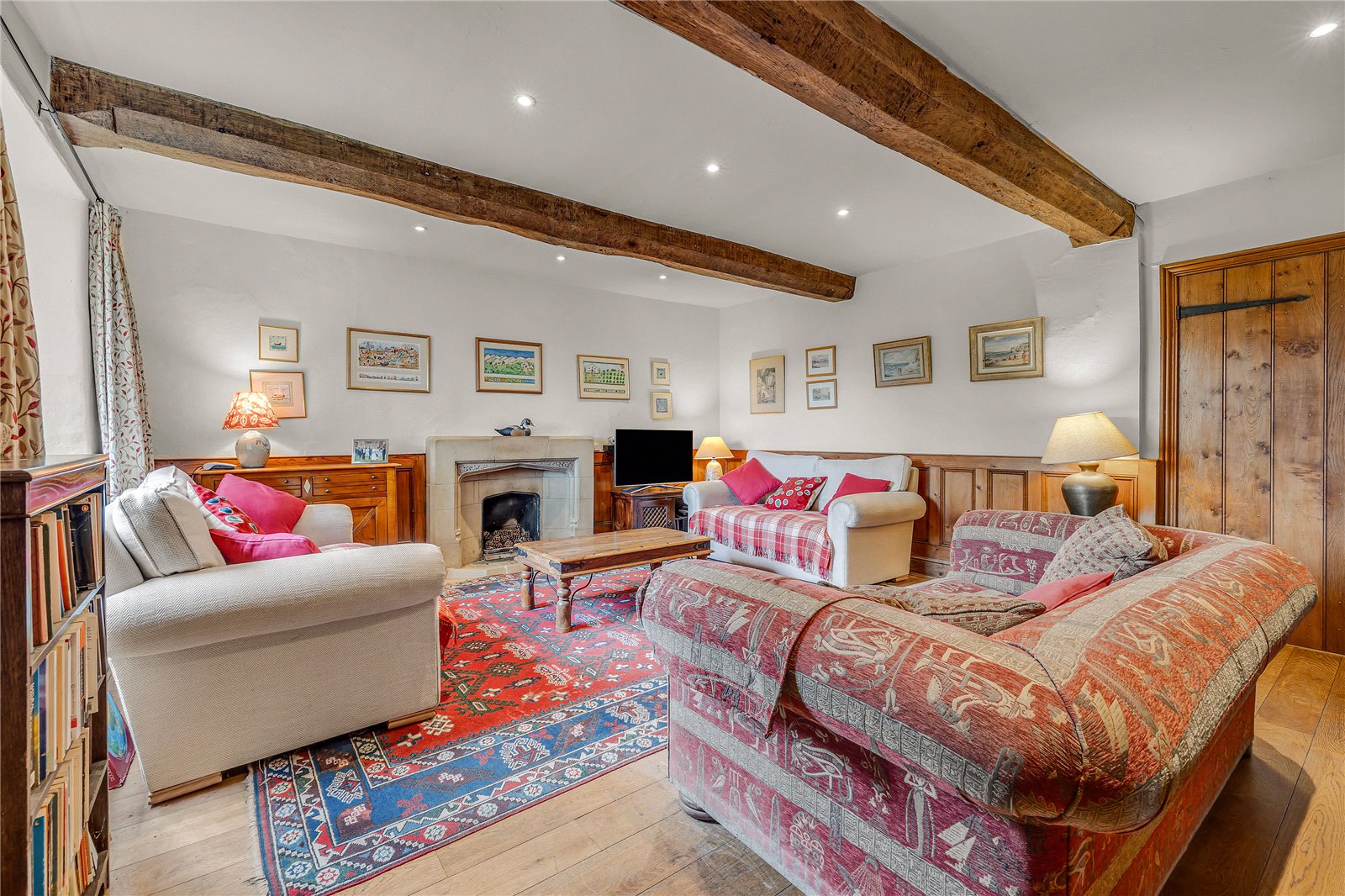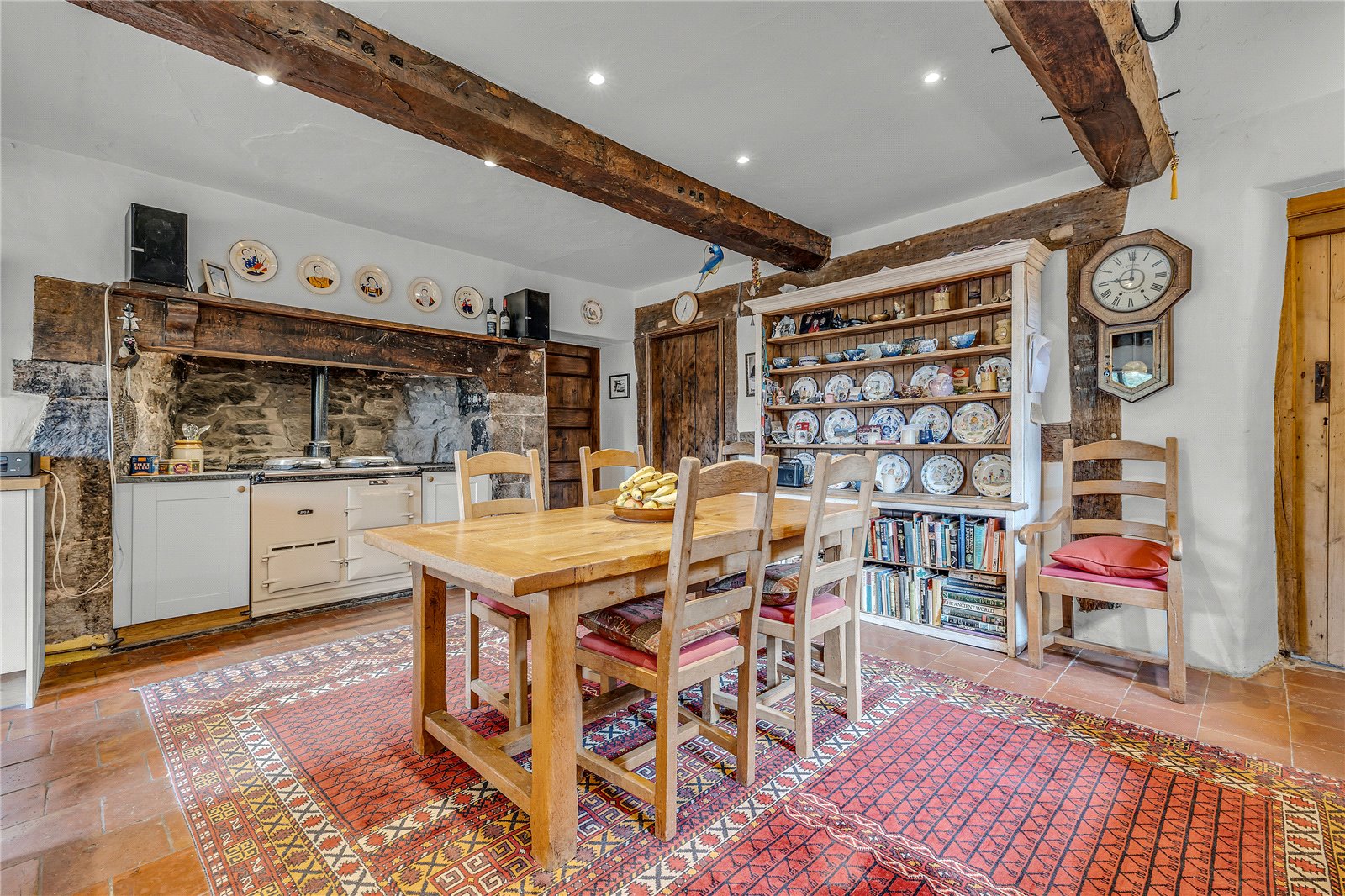 Set in formal gardens and retaining a wealth of character throughout, this is a beautiful home that provides excellent accommodation that is arranged over three floors (plus cellar) with many rooms enjoying views to the surrounding countryside. The oak front door opens into the sitting room with a door leading to an inner hall from which stairs climb to the first floor. There is also a dining room and at the rear of the house a wonderful farmhouse kitchen which has an Aga, plenty of fitted cupboards and drawers, as well as space for a large farmhouse table and sofas. The study is located off the kitchen, converted from what was a former dairy. There is also a utility, cloakroom and a wonderful oak framed garden room added in the last of couple years which connects the house into the garden superbly.