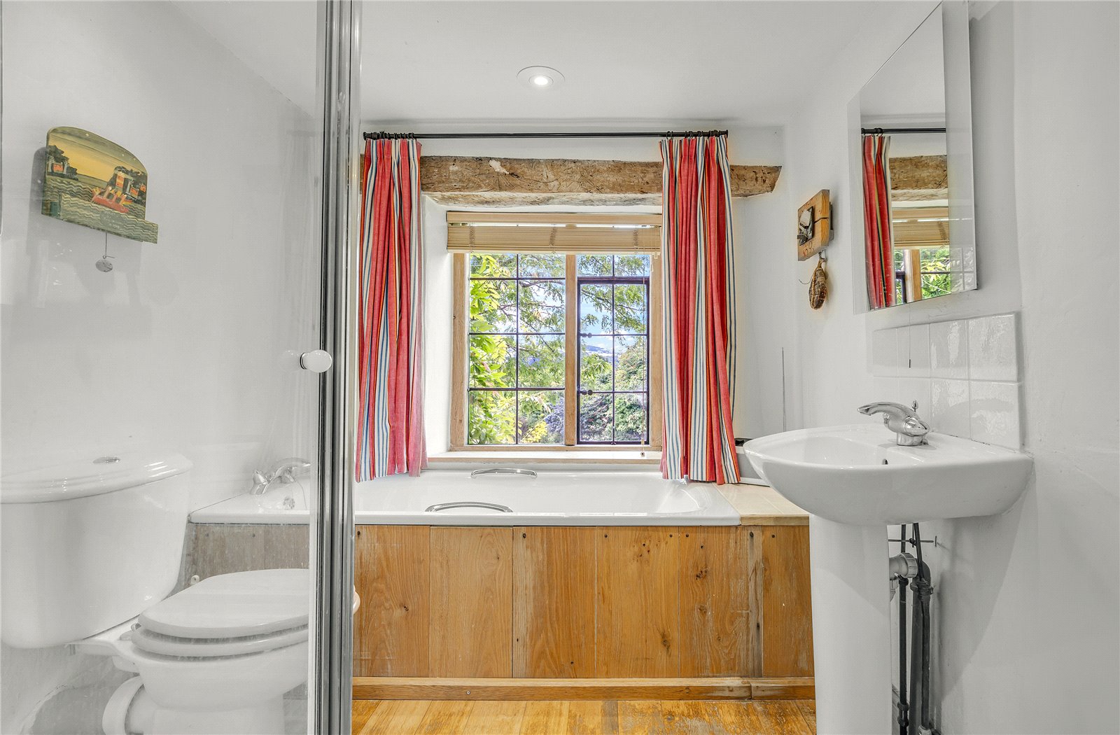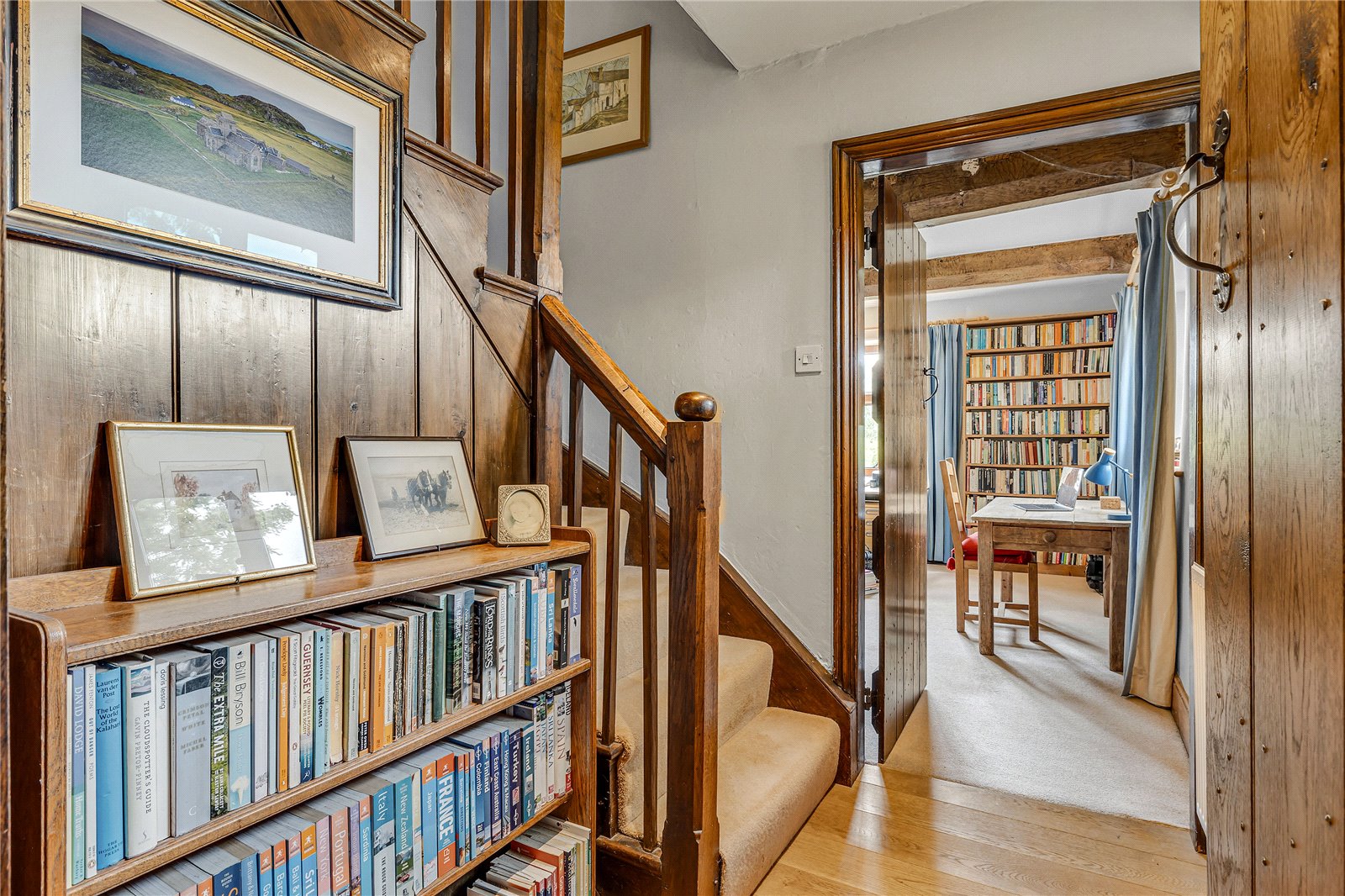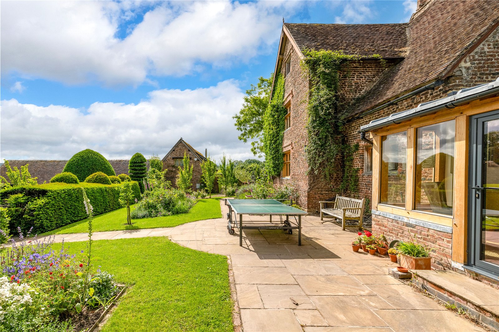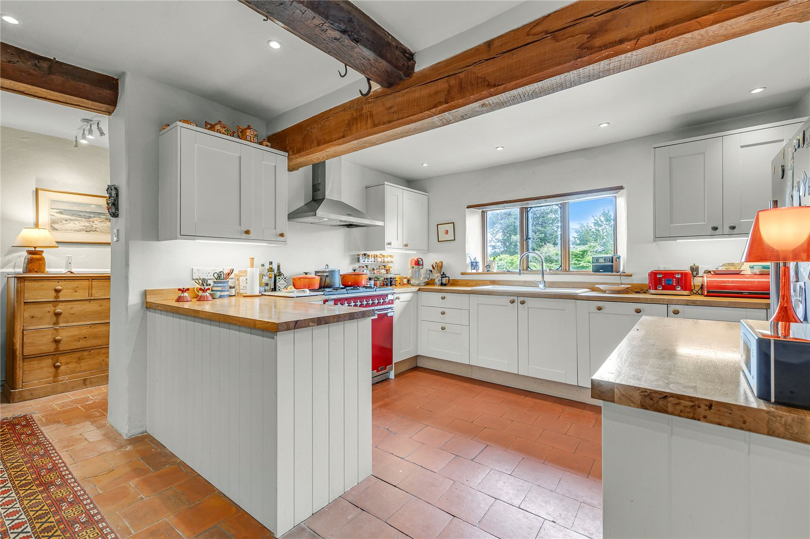 Set in formal gardens and retaining a wealth of character throughout, this is a beautiful home that provides excellent accommodation that is arranged over three floors (plus cellar) with many rooms enjoying views to the surrounding countryside. The oak front door opens into the sitting room with a door leading to an inner hall from which stairs climb to the first floor. There is also a dining room and at the rear of the house a wonderful farmhouse kitchen which has an Aga, plenty of fitted cupboards and drawers, as well as space for a large farmhouse table and sofas. The study is located off the kitchen, converted from what was a former dairy. There is also a utility, cloakroom and a wonderful oak framed garden room added in the last of couple years which connects the house into the garden superbly.