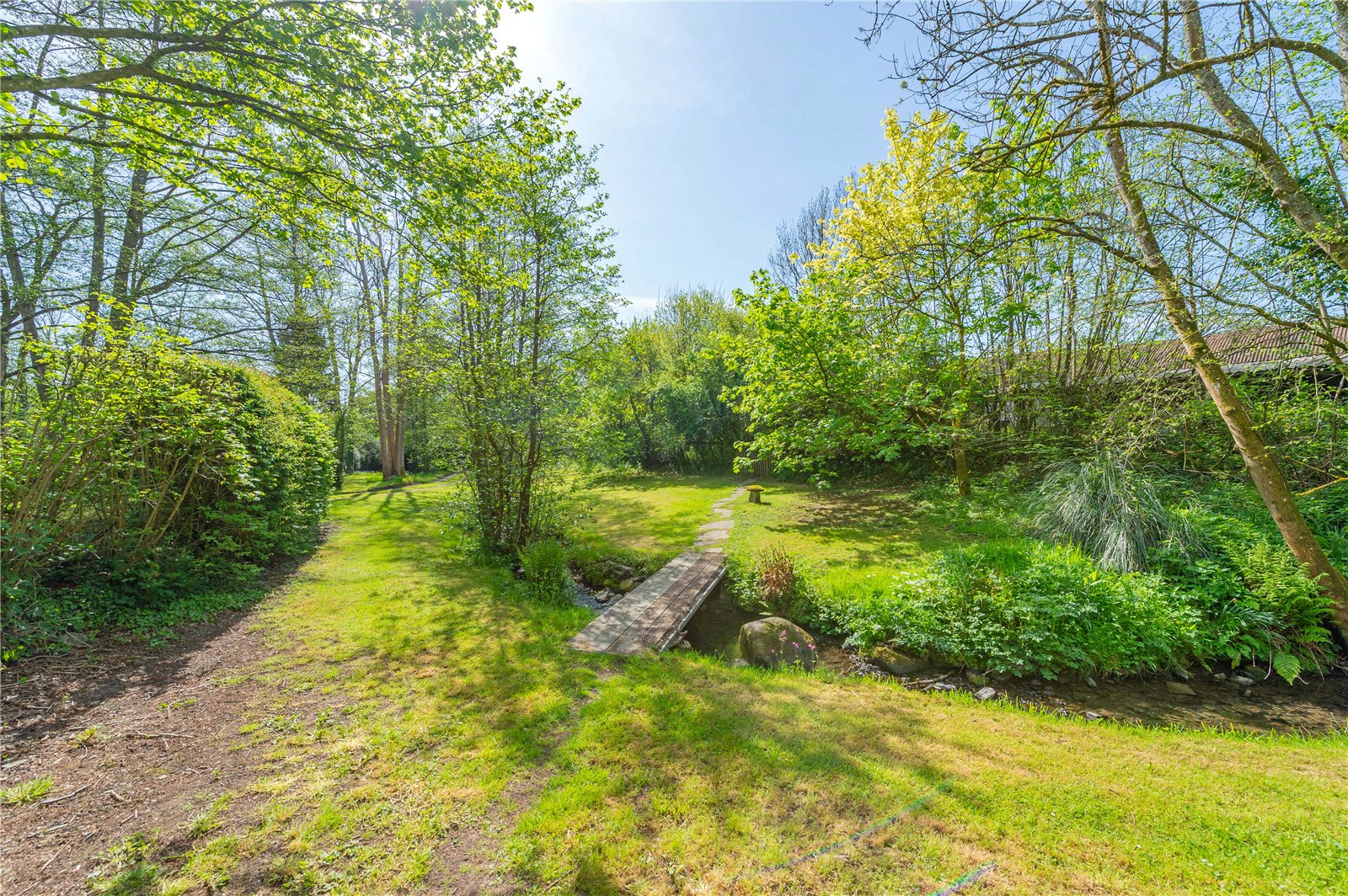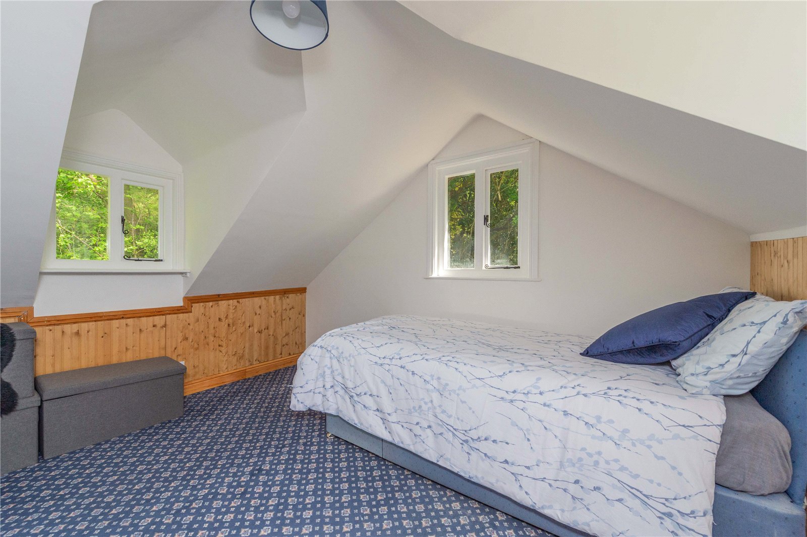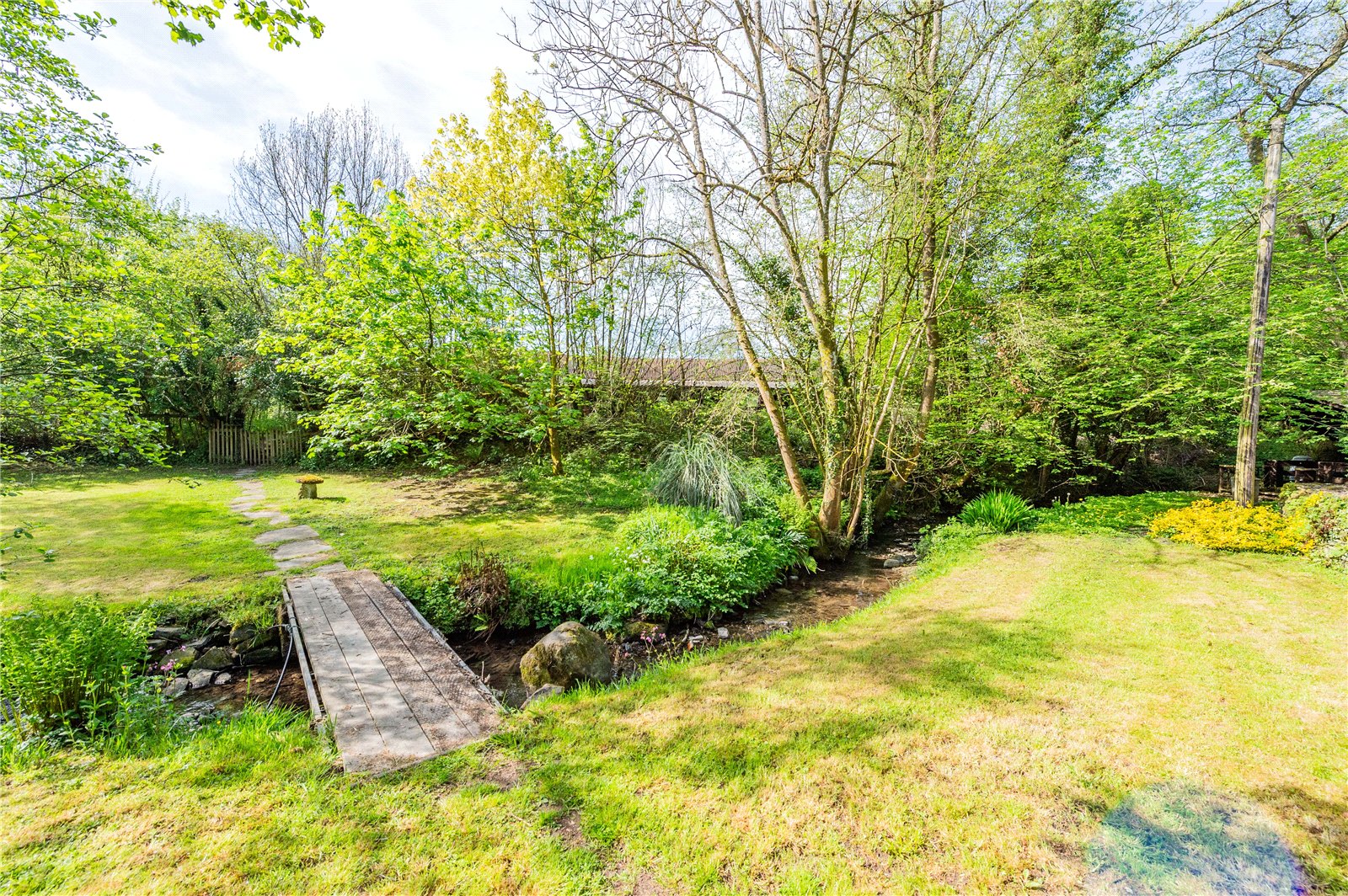 The cottage is approached from the no through road via a driveway lined with trees, leading to an ample parking area. There are pretty lawned gardens, established borders with a winding stream to the front plus a summerhouse.