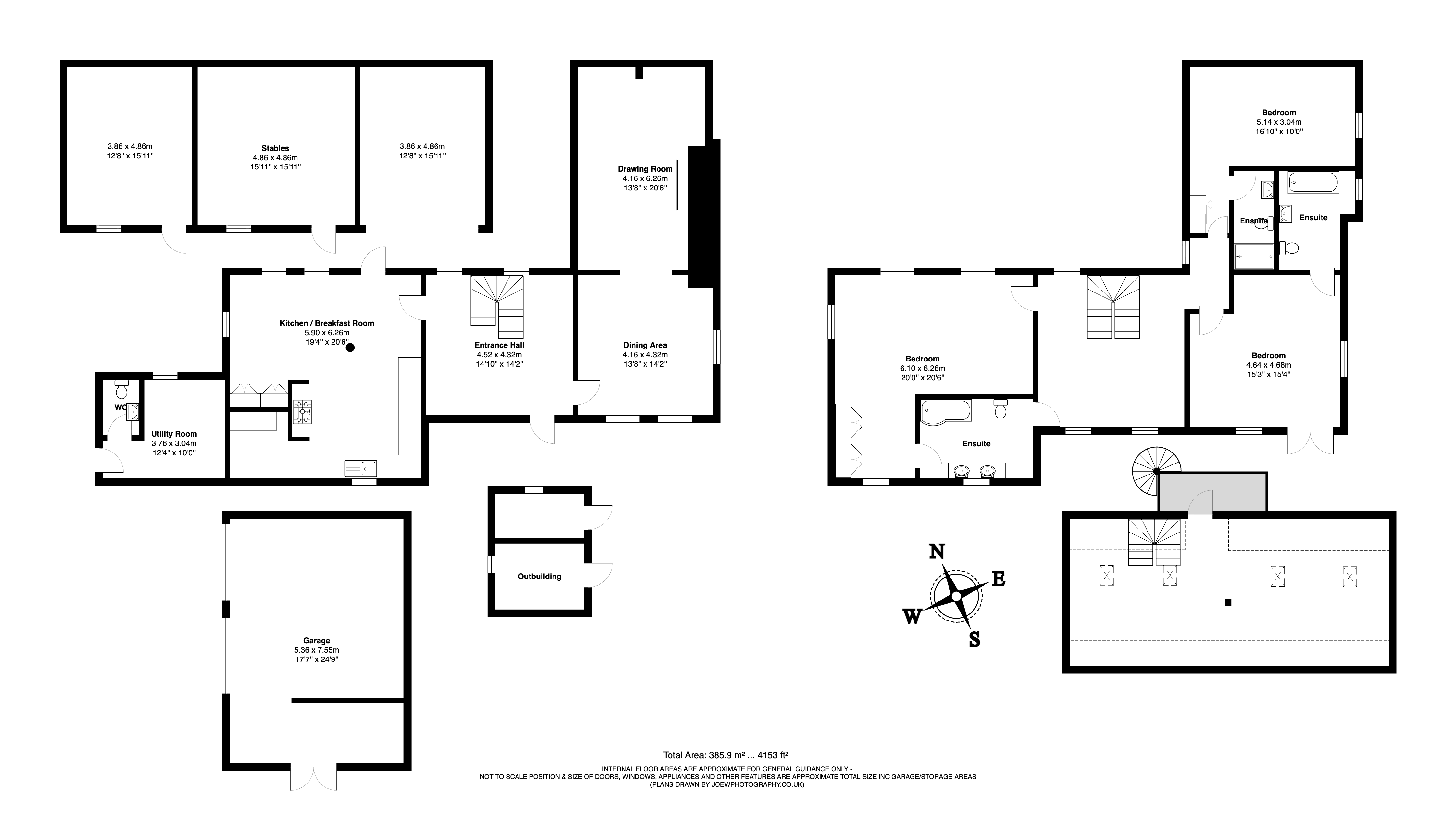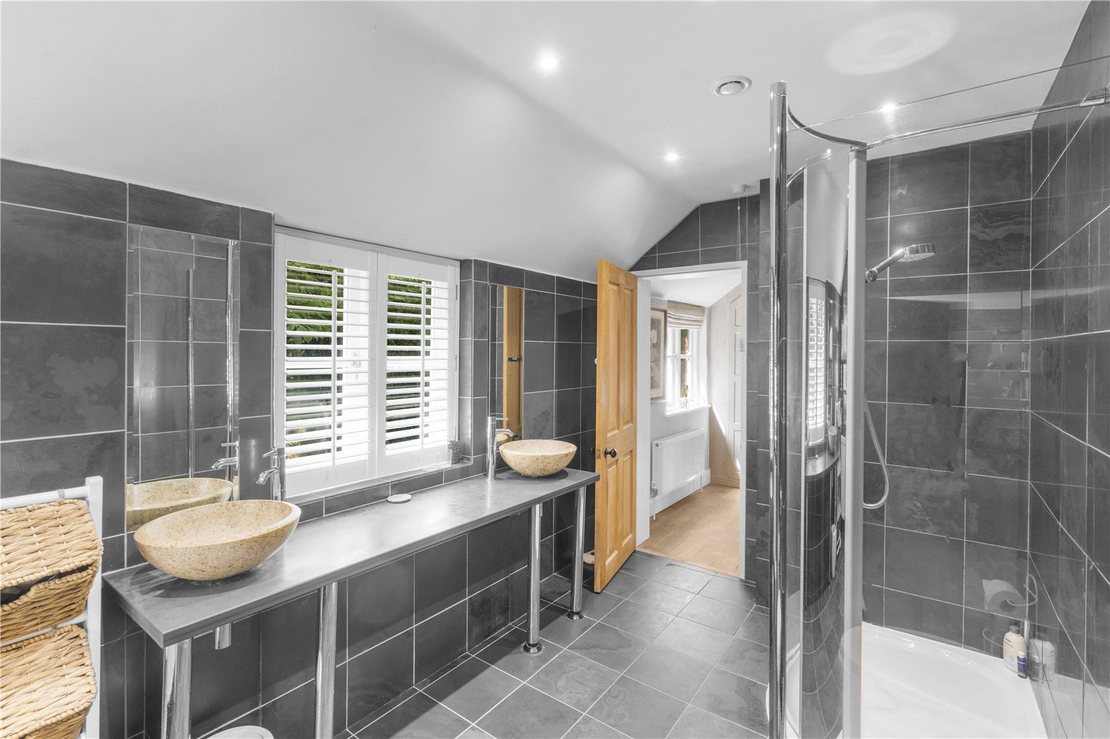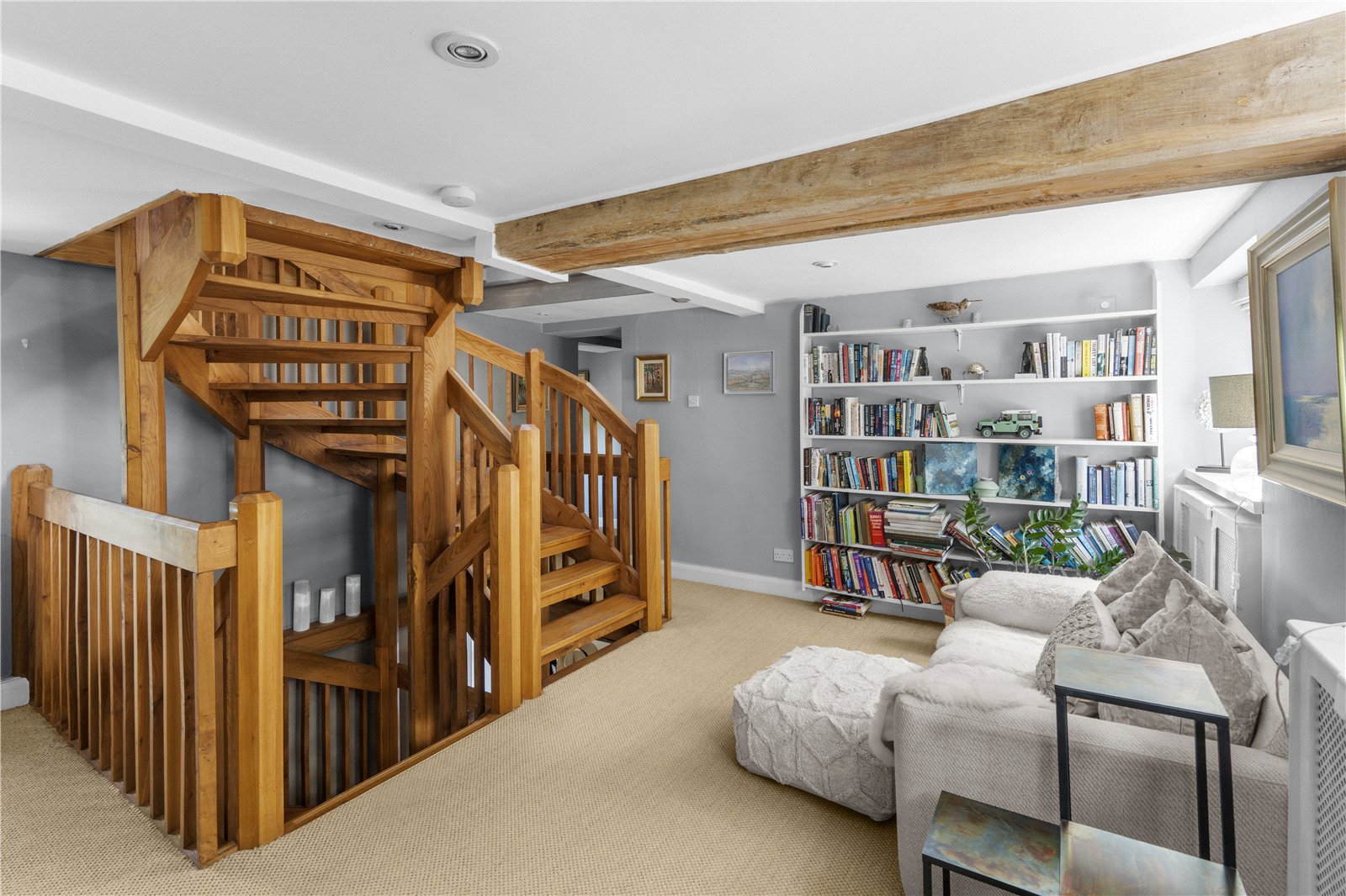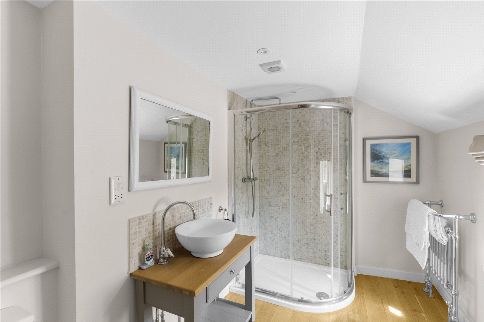 On the first floor, there is a galleried landing / library with two bedrooms both benefitting from en-suite facilities. The impressive master bedroom suite has a feature freestanding bath, oak floors, a vaulted ceiling and an en-suite shower room with built-in wardrobes. On the second floor there is a potential fourth bedroom currently used as a studio area with separate external access.