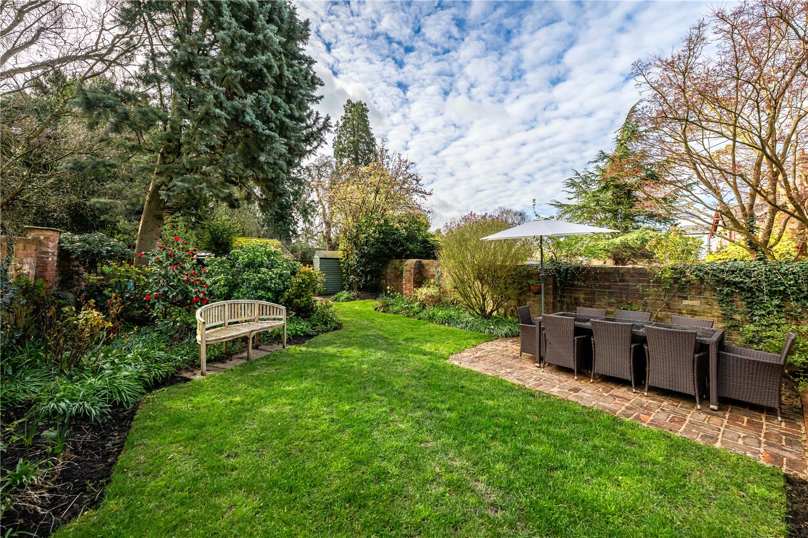 Outside, the property benefits from its own private enclosed rear south-facing walled garden with a patio area around the conservatory and gardens, which are laid to lawn with well-stocked mature floral and shrub borders together with an ornamental tree. There is an additional block-paved patio area providing an outside seating / dining area and a small garden shed in one corner of the garden. There is access to the side which leads out to the front elevation. In addition to this, the property also benefits from a nearby garage, which also has a parking space in front and to the side.