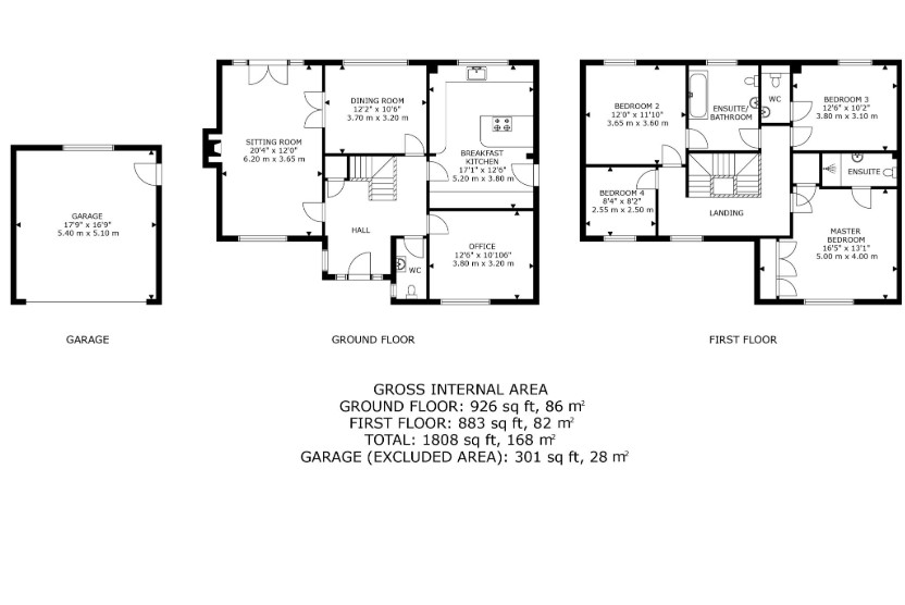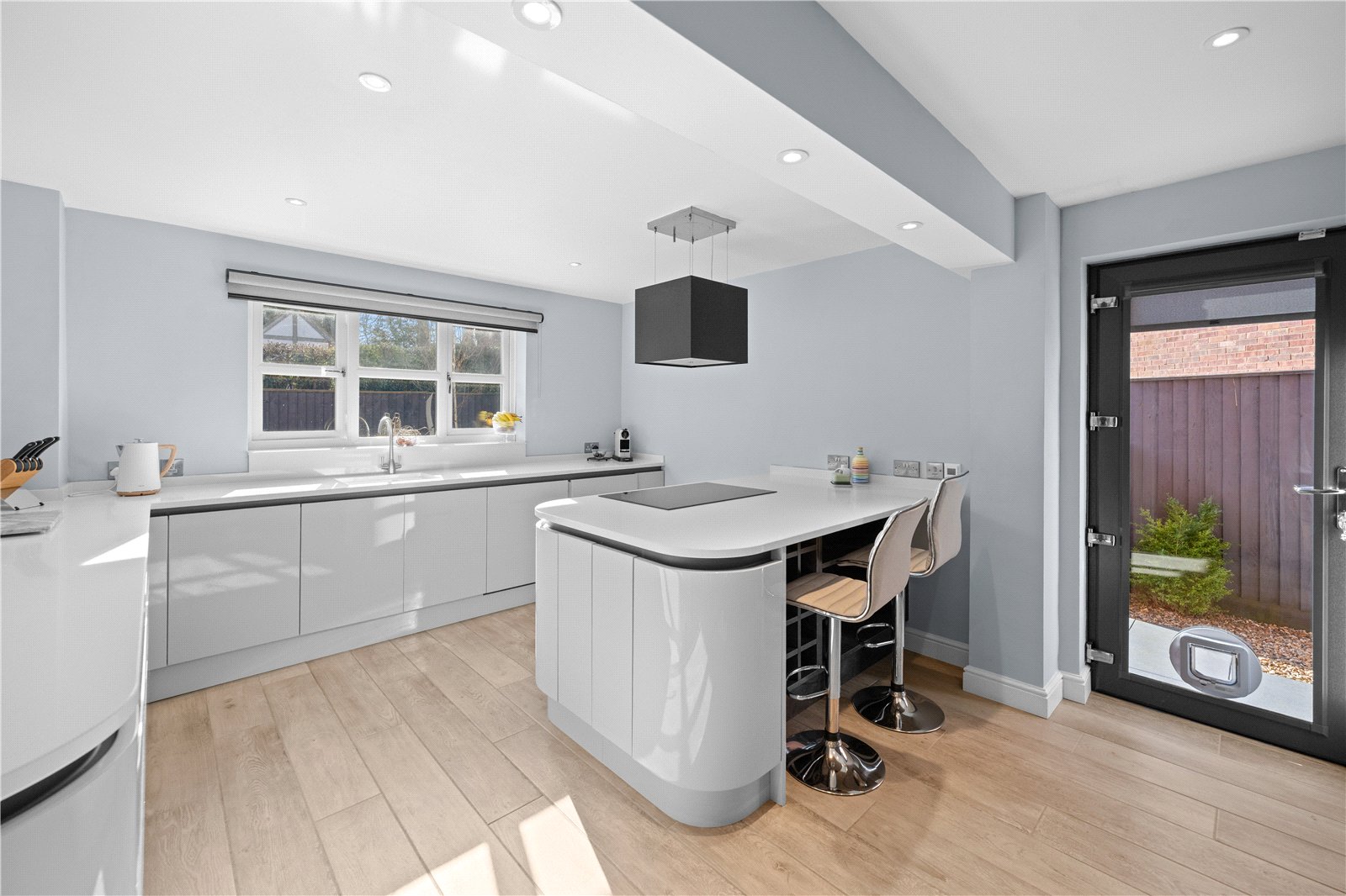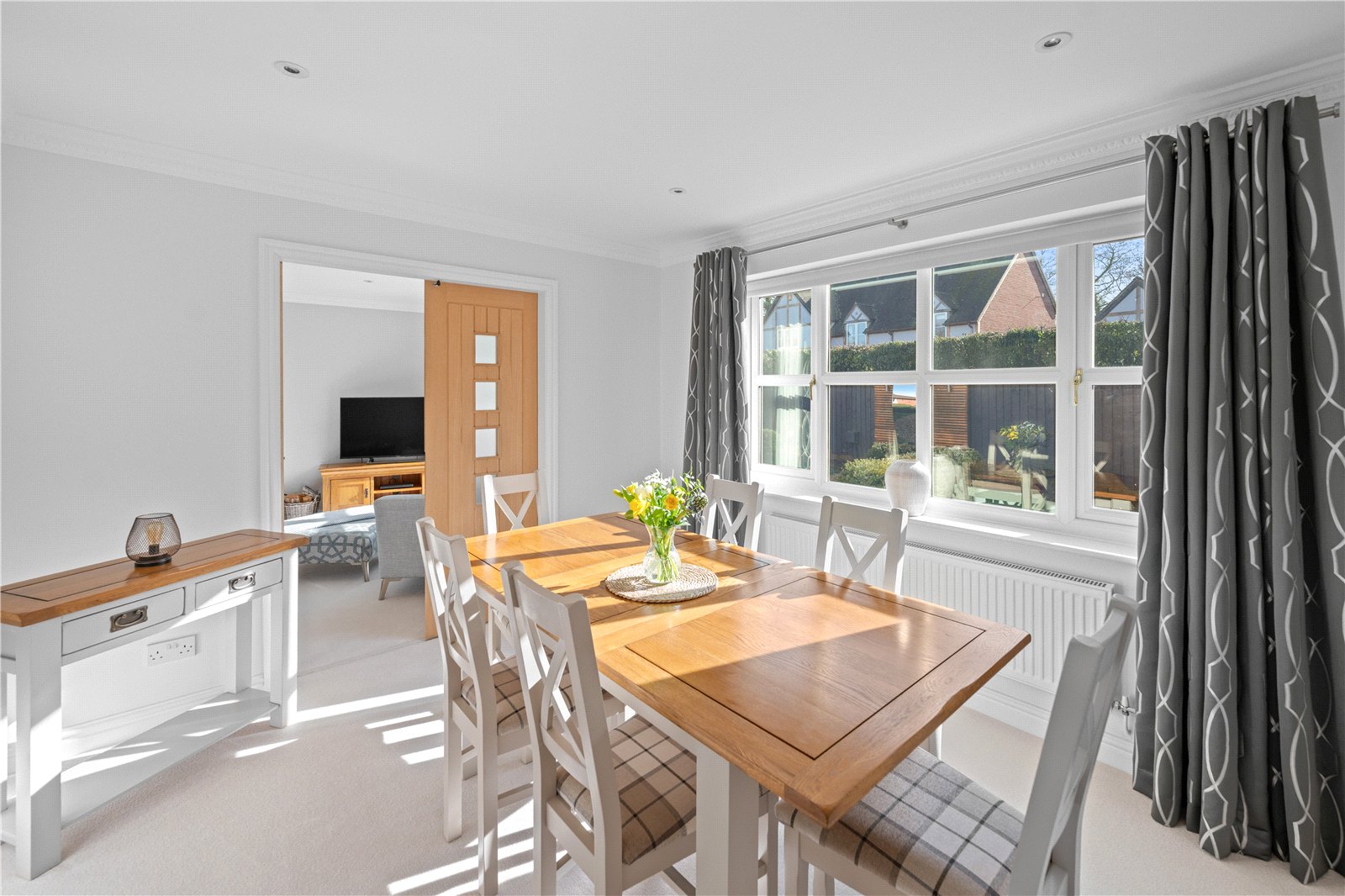 The house offers a high specification and many generously proportioned rooms, comprising of a spacious hallway, WC, a kitchen with high-end integrated appliances, dining room, office and a sitting room with an inglenook and log burner. This dual aspect room has a window to the front and french doors opening onto the terrace with the garden to the rear.