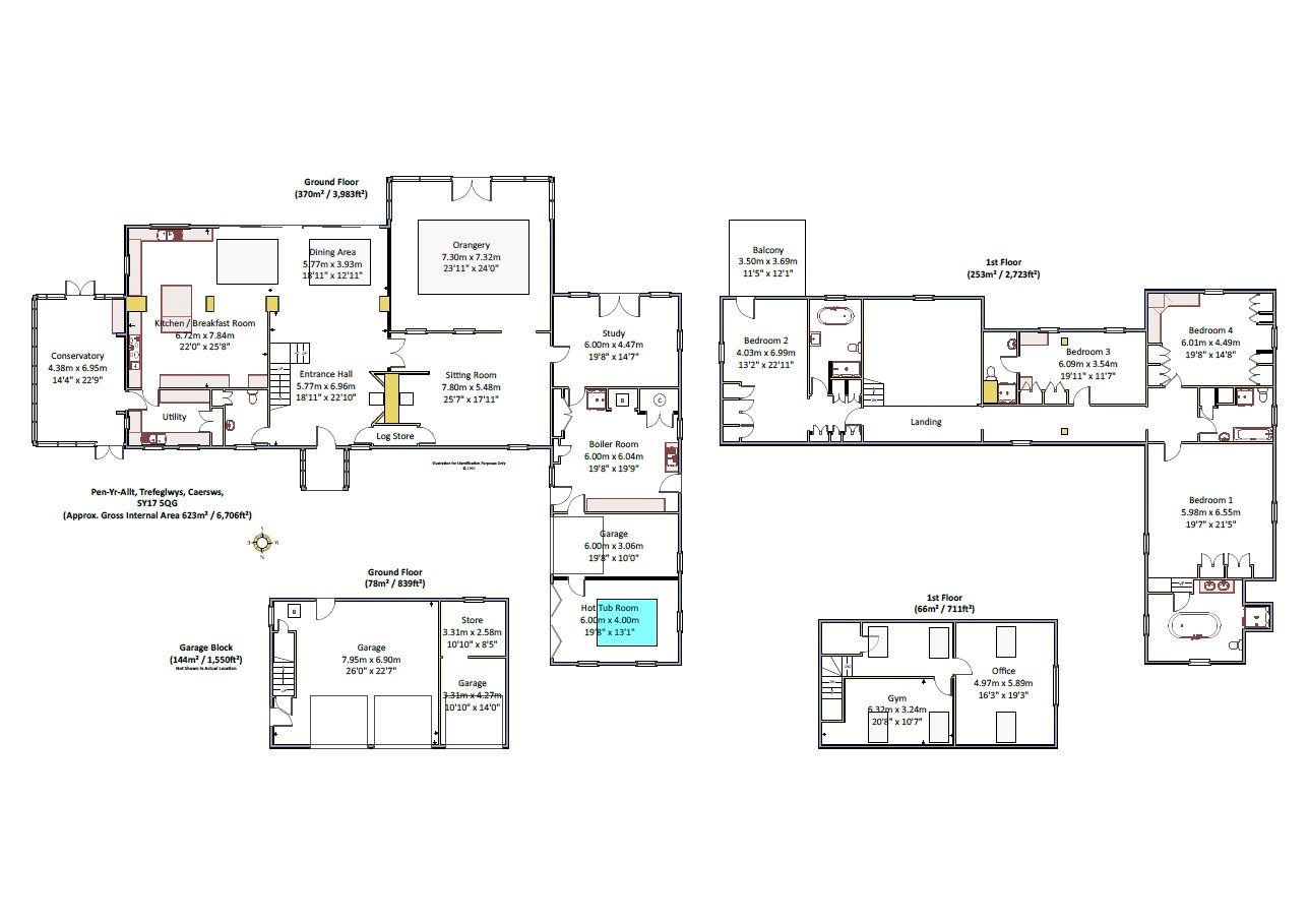 There is a teak-framed greenhouse with its own electricity supply and further raised beds alongside. There is also a garage block, built to a residential specification with provisions for a shower room; currently laid out as a gym and office, this could easily be converted into an annexe (STPP) if a purchaser wished to do so.