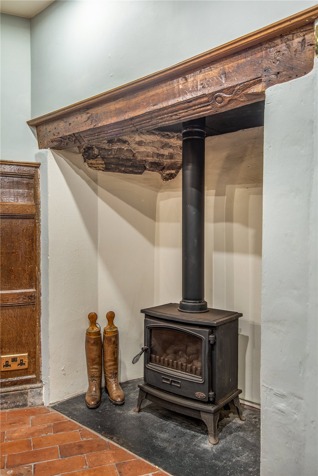 6 Dogpole offers a wonderful Blend of History and Comfort with modern convenience, showcasing a variety of original elements that truly define its unique character. Among these features are the orginal exposed beams, and Victorian paver flooring adding elegant touch, while the rich, oak-paneled walls throughout the home create a warm and inviting atmosphere.