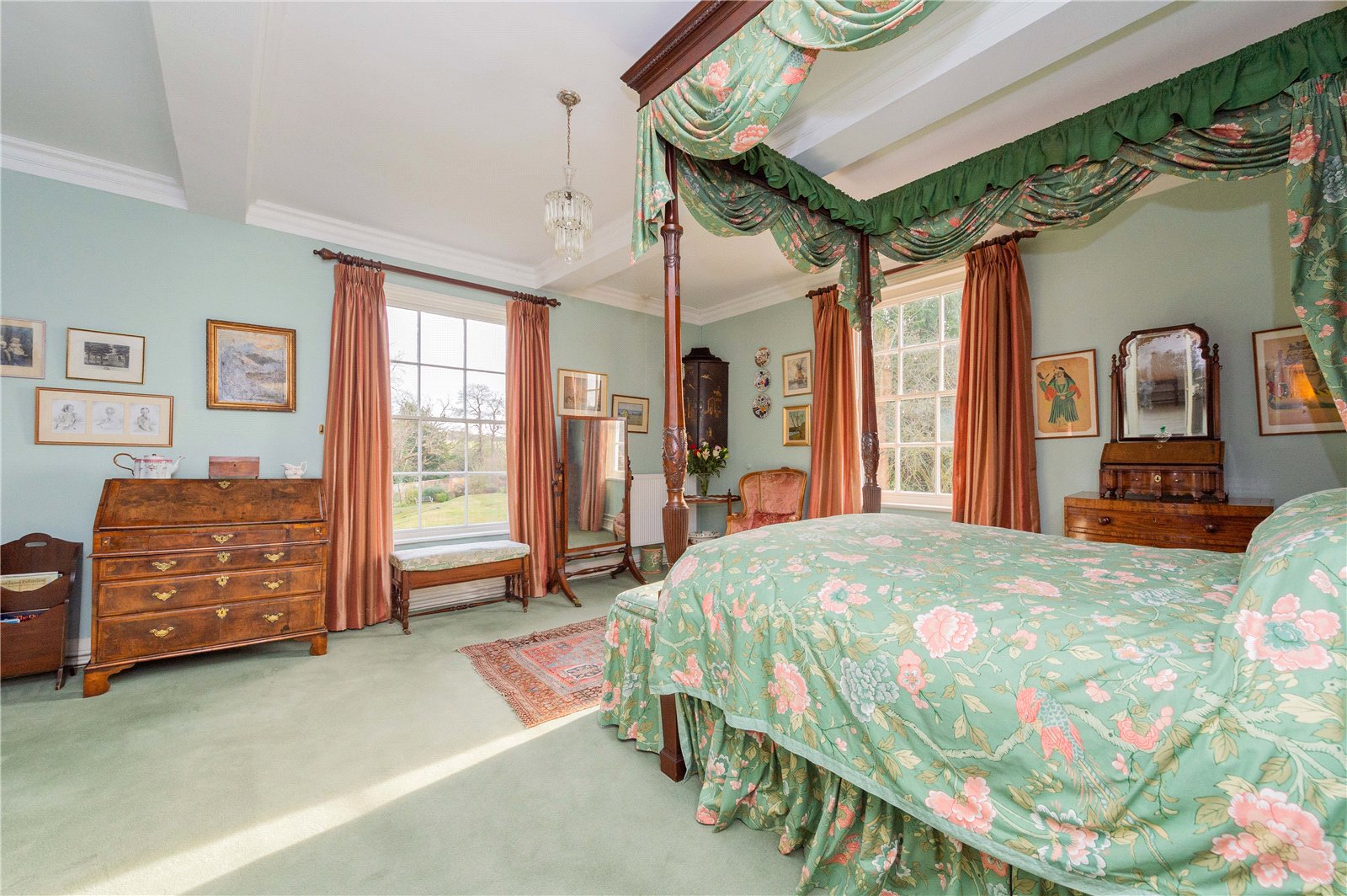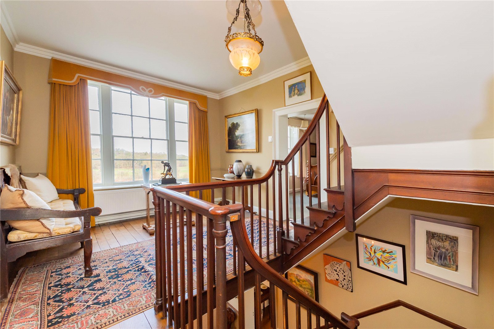 Across the landing is the fourth bedroom, with a family bathroom next door and a cloakroom beyond. On the second floor, the accommodation is divided by a door. On the formal side overlooking the front, there is a large double bedroom with countryside views, a single bedroom next door and the library beyond.