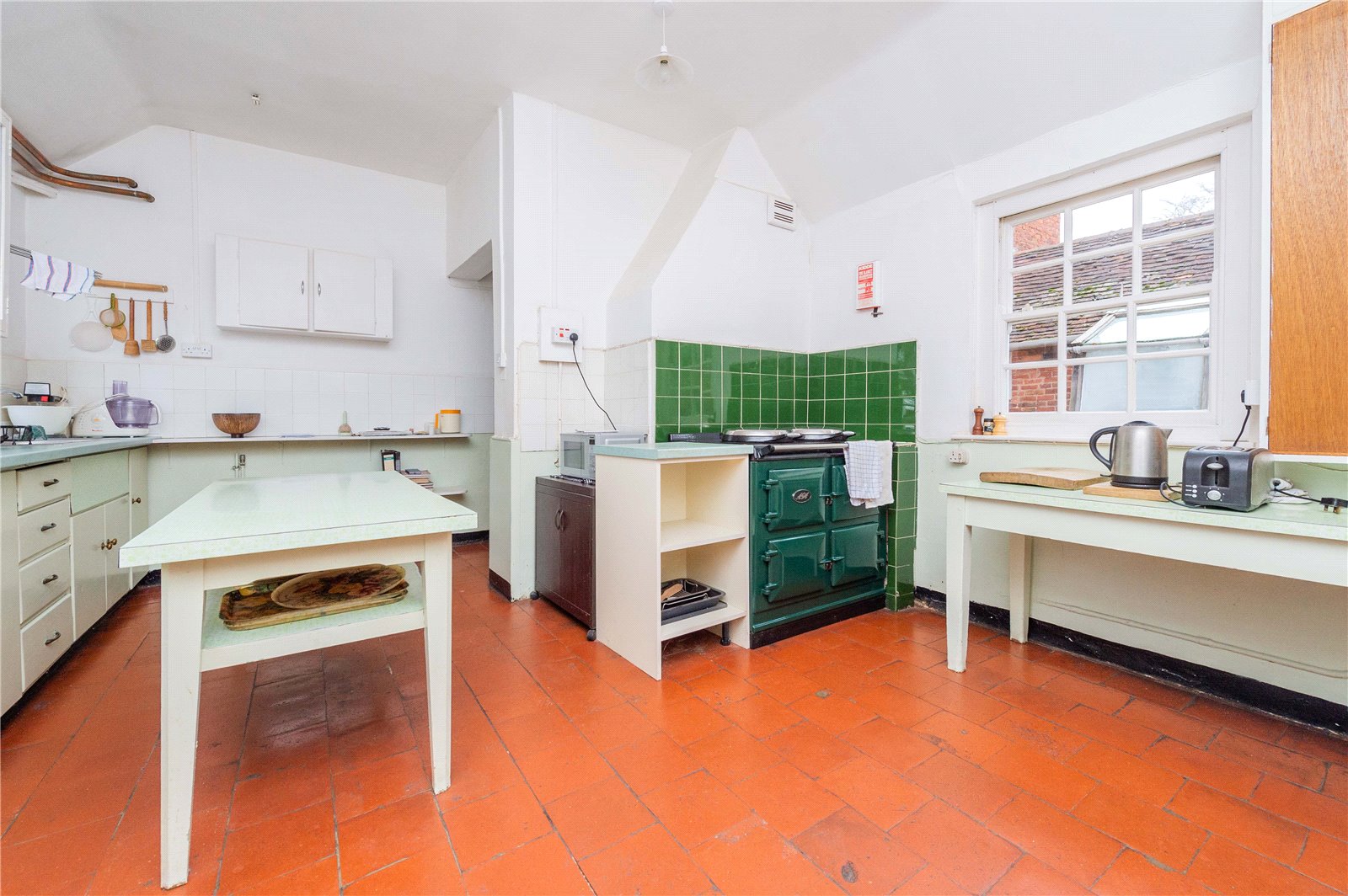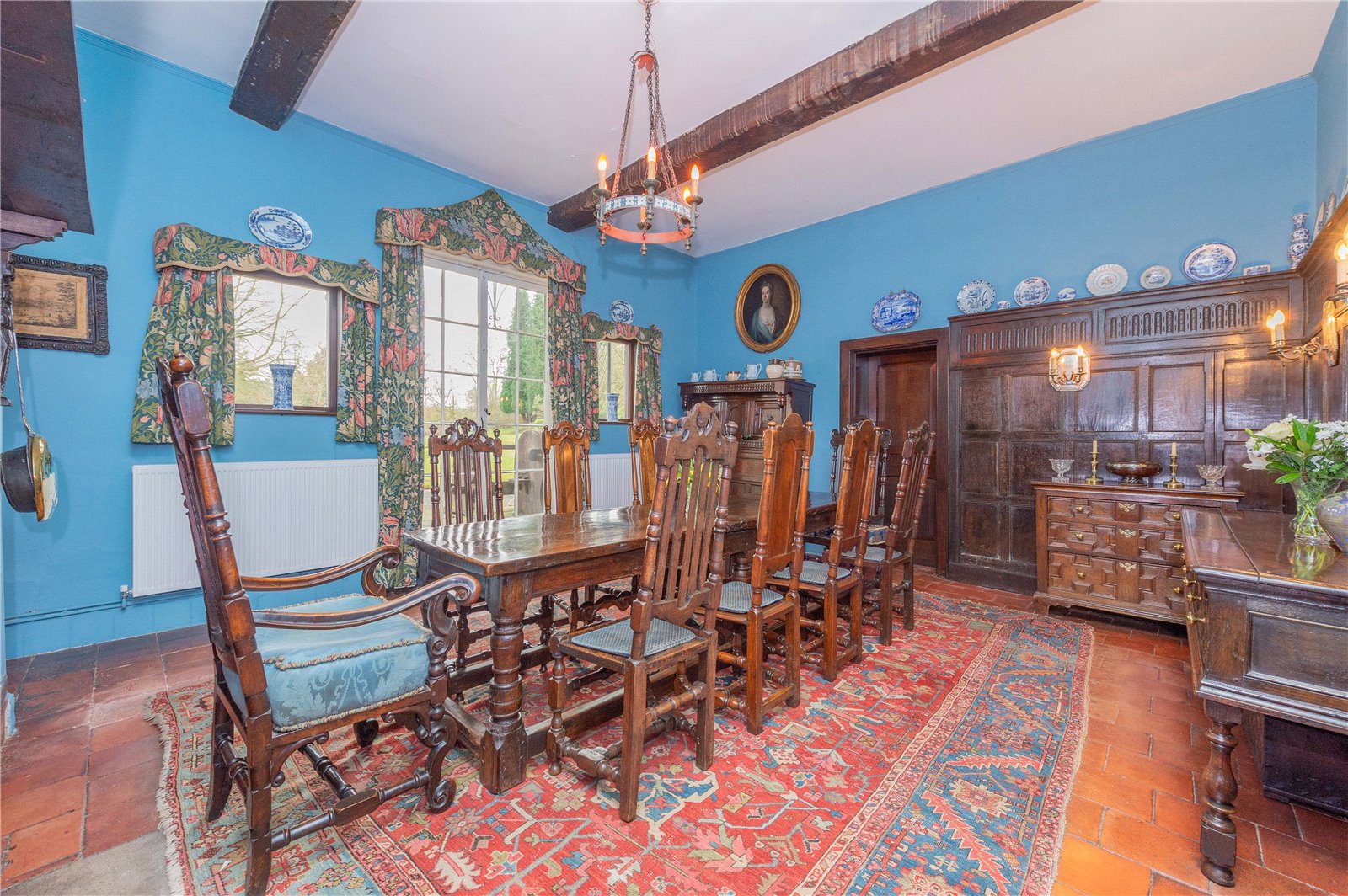 the garden. Adjacent is the boot room with direct access out to the garden. Further beyond is the pottery room which in turn flows back to the courtyard. The kitchen has a dual aspect, an electric double hob AGA, and a pantry with the breakfast room next door.