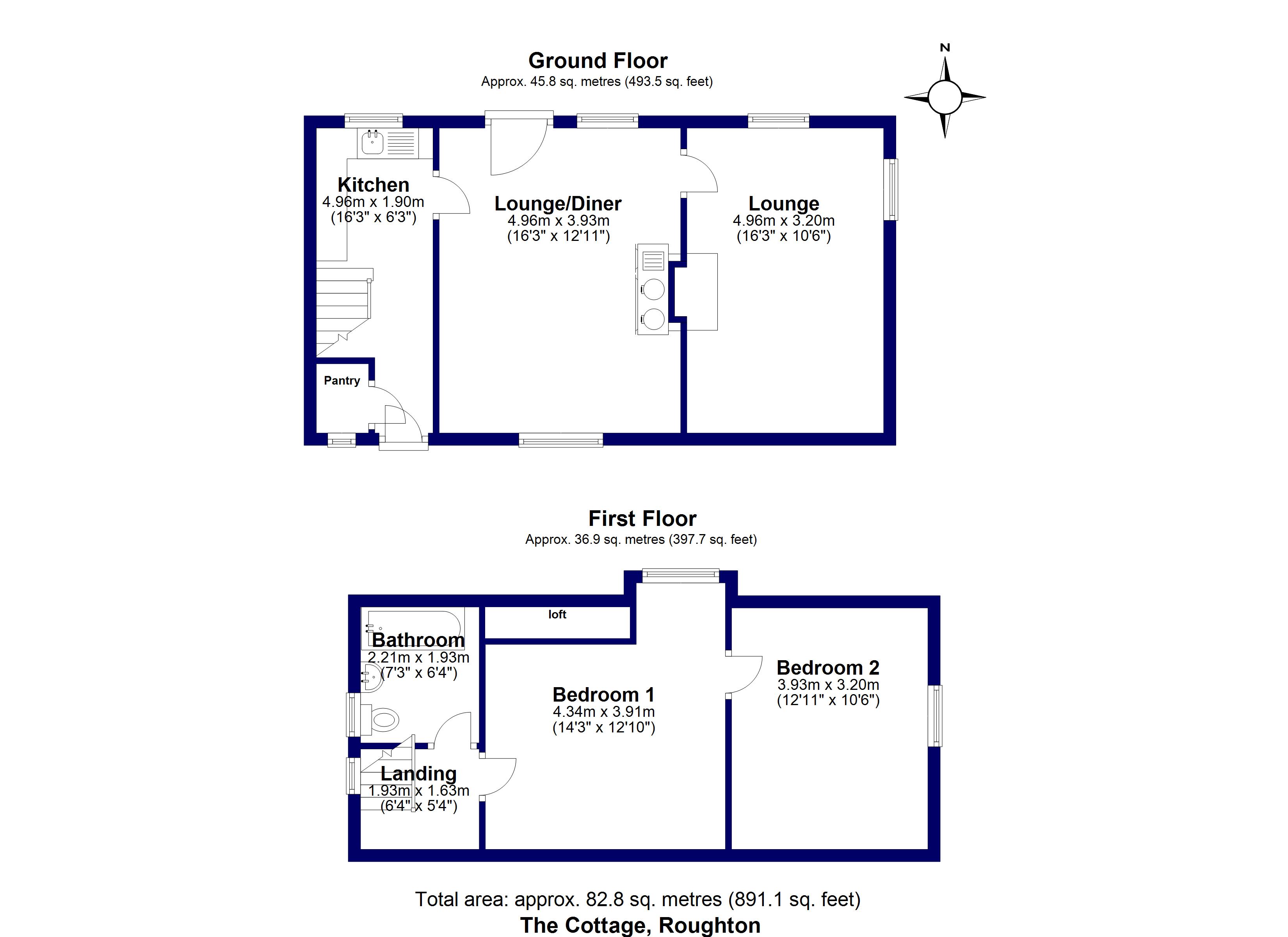Roughton House Cottage is a charming house in need of modernisation, providing a sitting room with an open fireplace, a hall with views to the garden and a kitchen. Upstairs, there are two bedrooms and a bathroom.