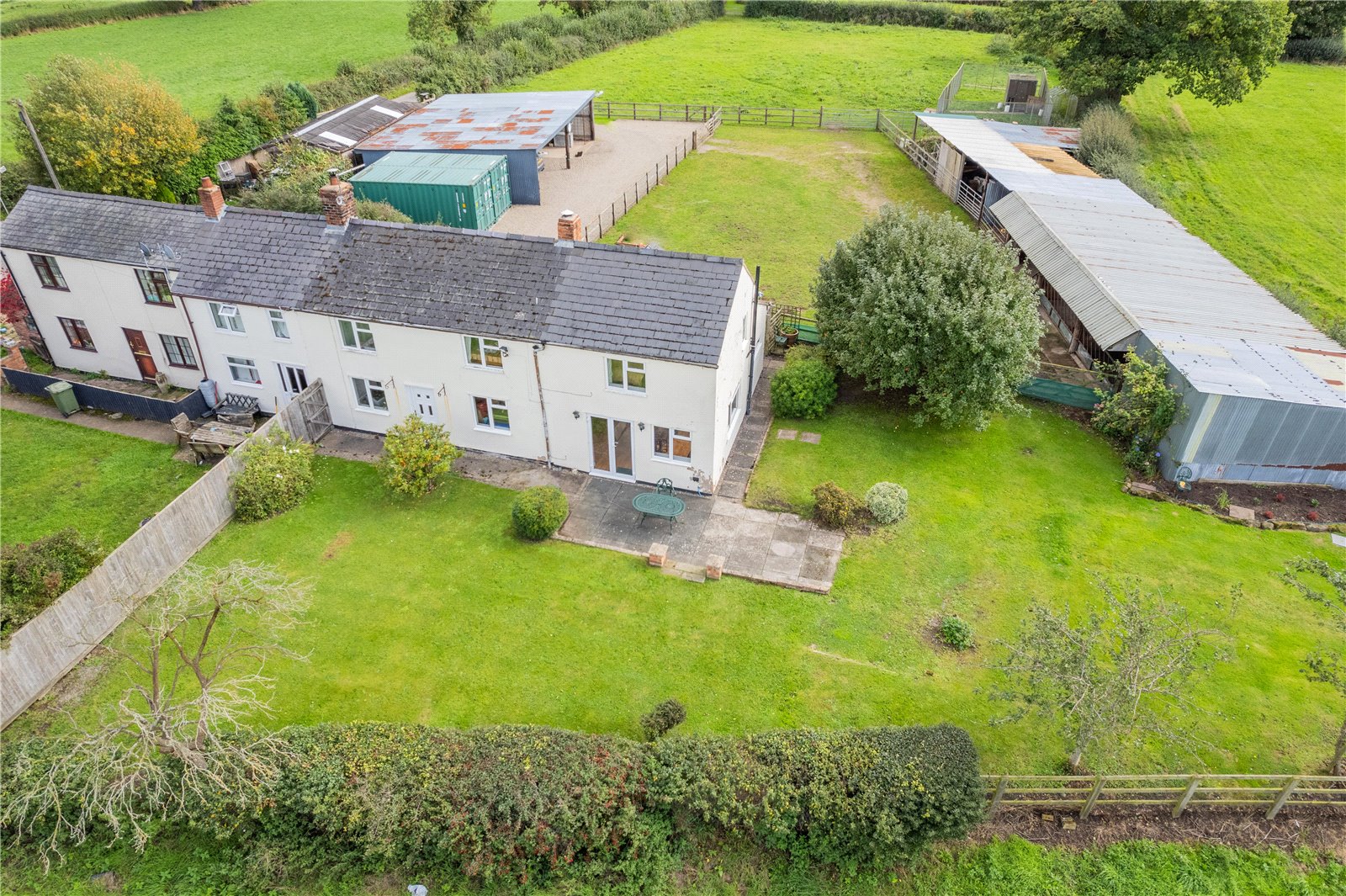 3 Dukes Cottages is located in the heart of the Cheshire Marches countryside. The property is semi-detached with a delightful outlook over the surrounding farm land and comes with 3.4 acres (1.37 ha) of land split across a yard and several paddocks.