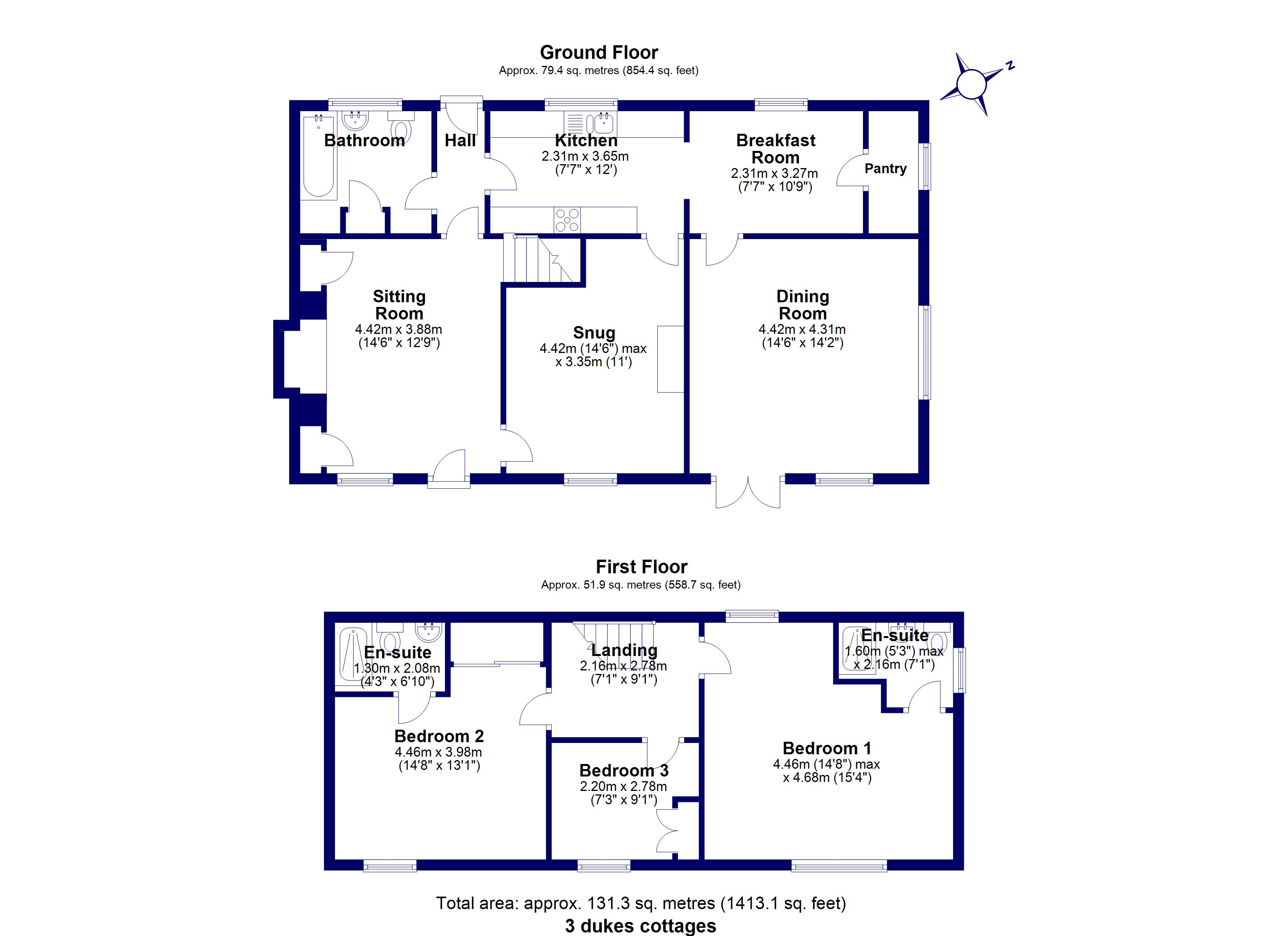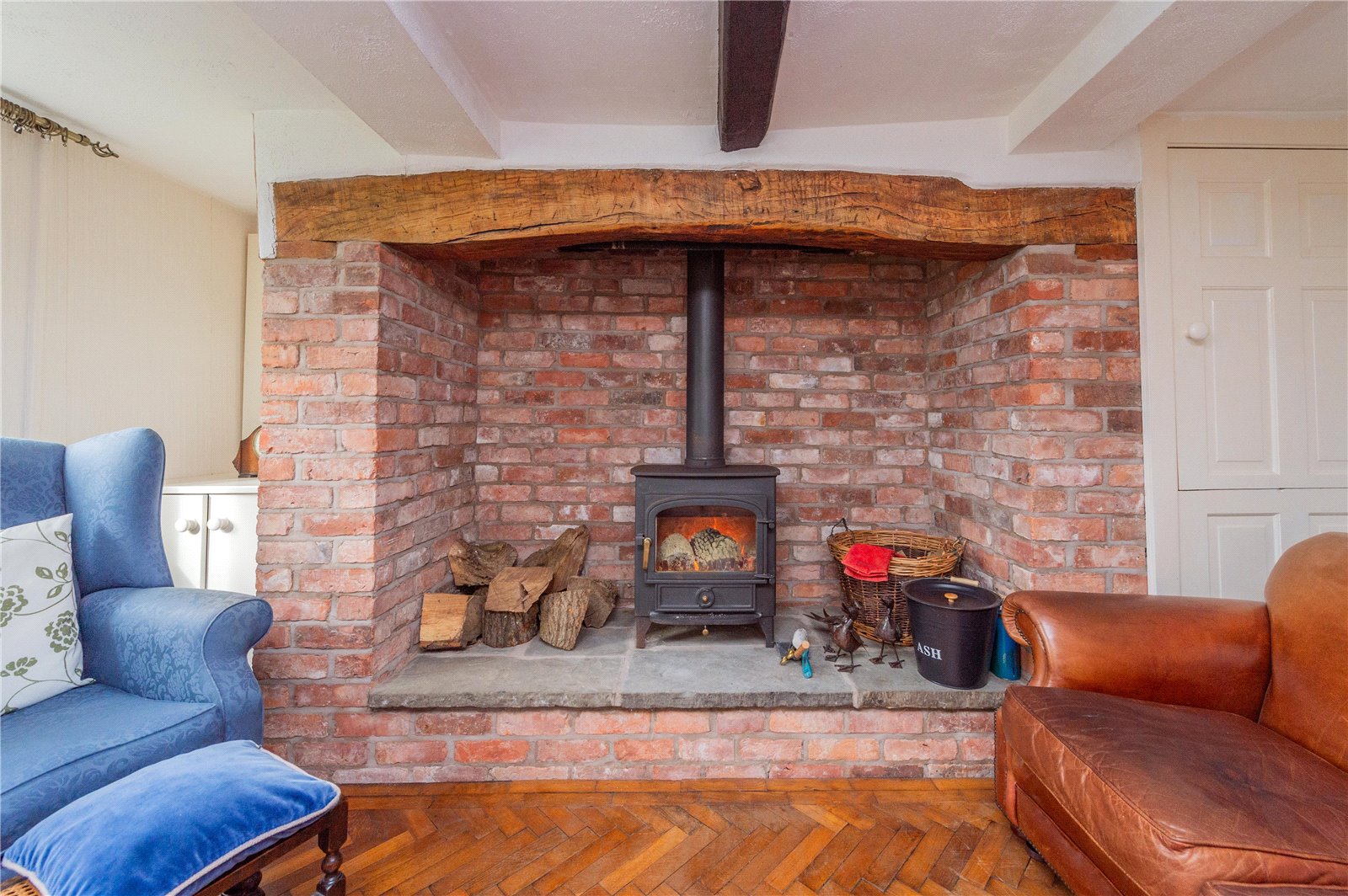 The cottage was originally built in the 1750’s and retains some of the original features with an Inglenook fireplace and parquet flooring in the sitting room. Following on is the snug (study / fourth bedroom) which leads through to the open plan kitchen and breakfast room with separate large pantry. The generous dining room has far-reaching views and access to the garden. Both the sitting room and the snug boast Clearview log burners, one with a back burner.
