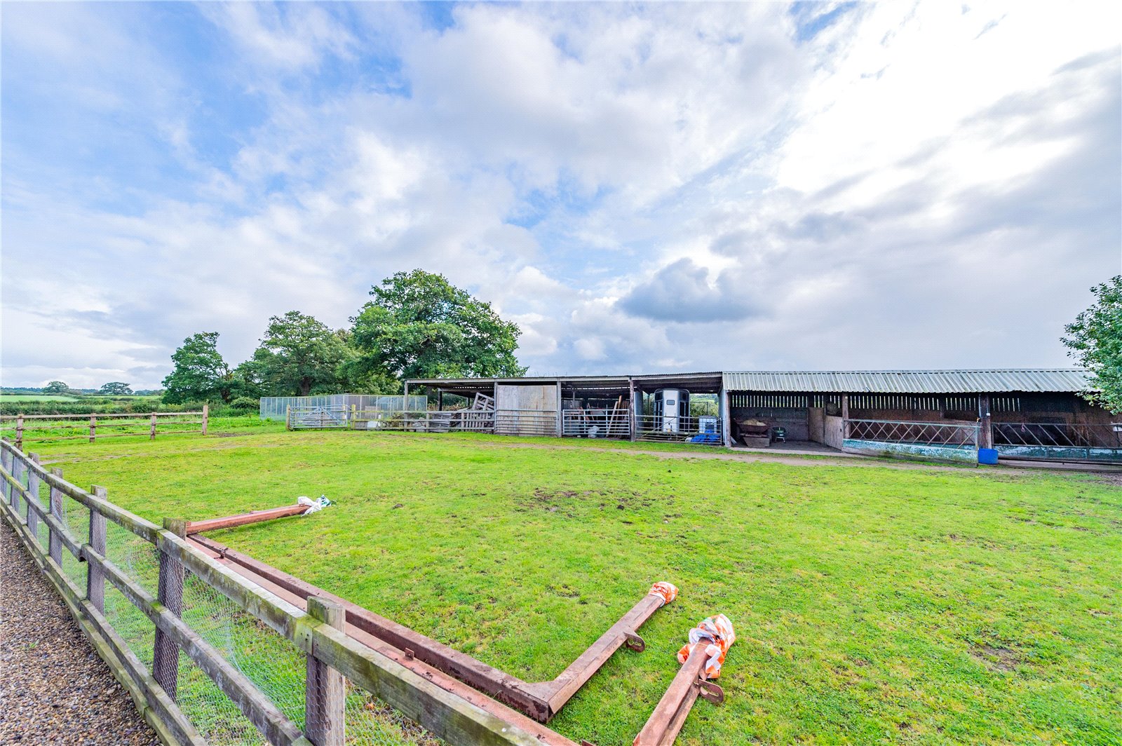 The garden is mostly laid to lawn with mature borders, a shed and entertainment area. There is a large barn currently used as a carport providing ample external storage. Opposite is the generous front yard with a rustic range of former livestock buildings. Part of this has been repurposed for equestrian with three stables and a haybarn.