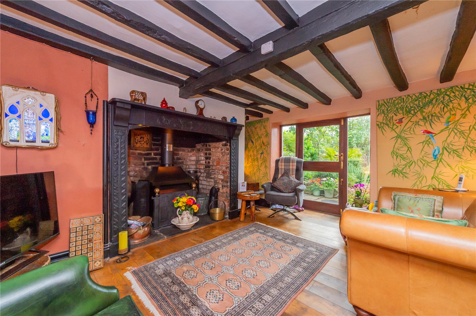 Internally, there are a pair of reception rooms either side of the hallway, both with bay fronted windows and working fireplaces. Further along is the snug with a large wood burner set in a wonderful ornamental fireplace. A large French door opens up into the garden. Adjacent is the kitchen / breakfast room with a double Belfast sink. The kitchen also benefits from a large pantry, utility and cloakroom. Further along is a garden room which is currently used as a dining room and provides access to a private terrace that boasts a wonderful far-reaching view.
