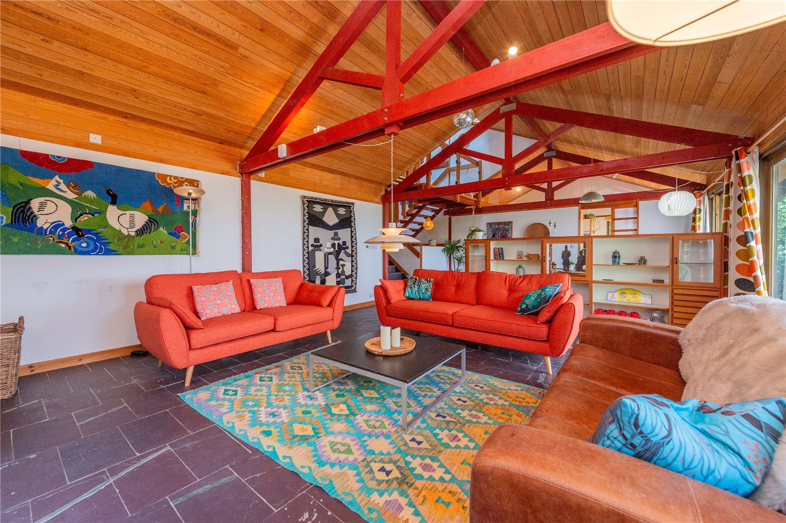 The sensitive design of the property and the use of locally sourced materials allows it to meld into the contours of the landscape, resulting in the design being specially commended in the National Esteidfodd’s exhibition of architecture in 1997.
