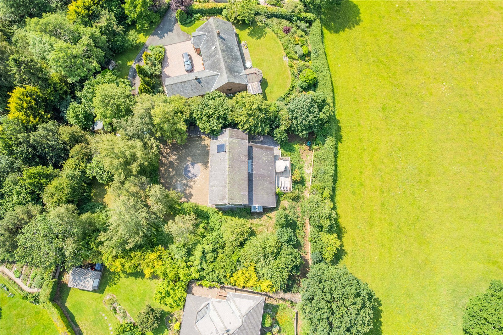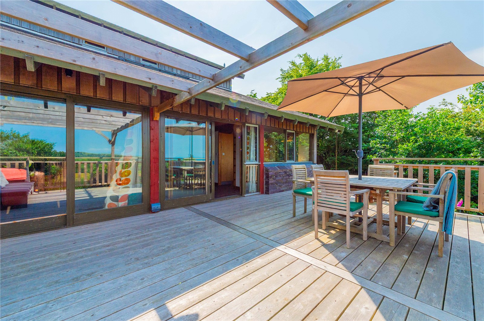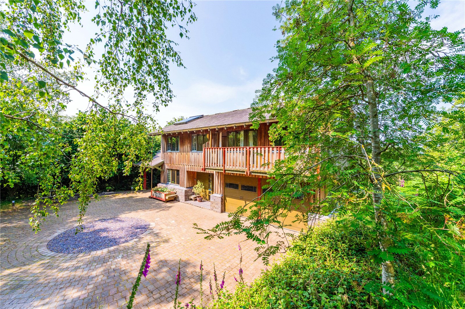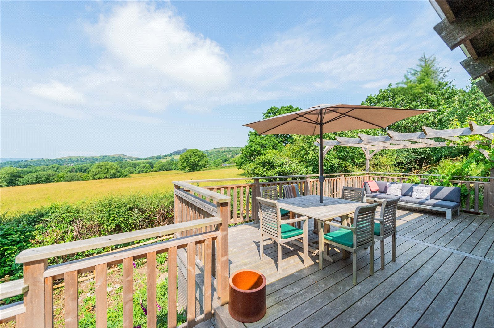 Externally, the property has a large timber decking area which was added in 2023, offering stunning unobstructed views of the countryside. The exterior also includes a carport, and a substantial paved driveway and turning circle.