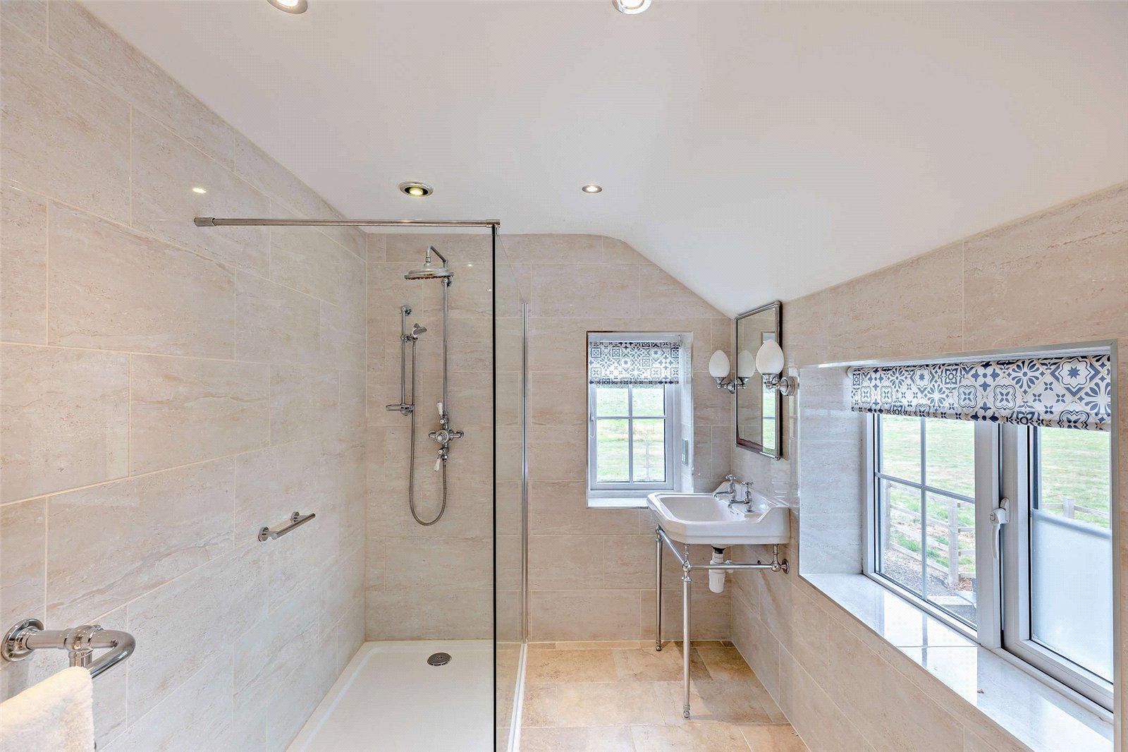 The remaining two bedrooms are served by a stylish family bathroom with both a large shower and bath, offering ample space for family or guests.