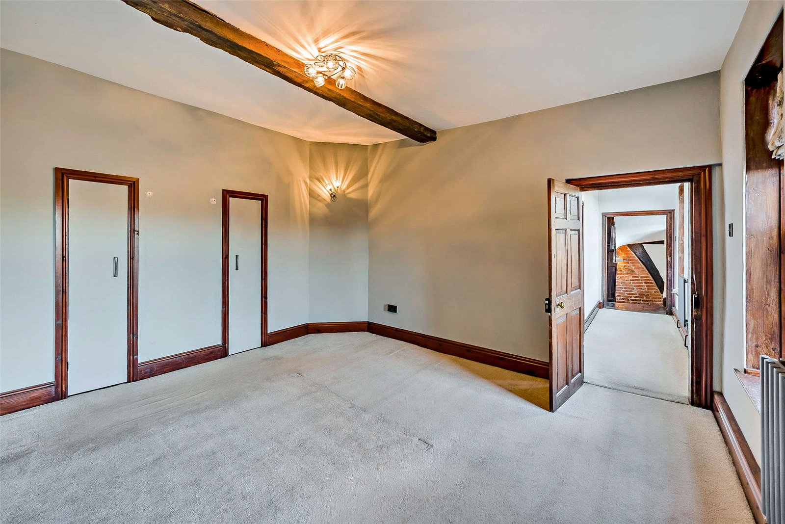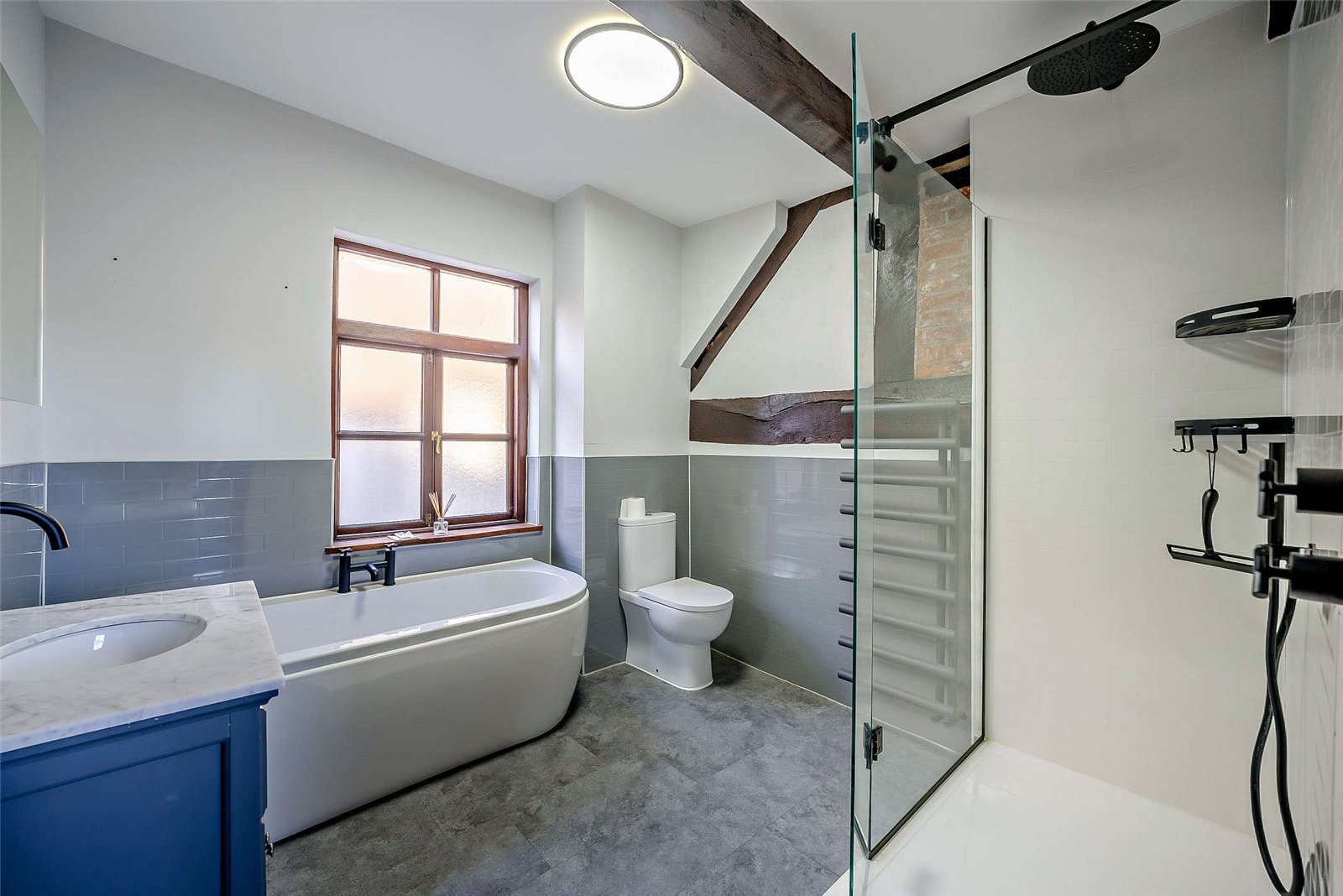 The bathrooms have been finished to a superb standard; a free-standing bathtub, walkin rainfall shower and chic modern fixtures create a luxurious feel. Clean lines and modern tiling sit comfortably alongside exposed beams, bringing character to the sleek aesthetic. Across the upper floors you’ll find four wellproportioned bedrooms, each refurbished with great attention to detail to preserve the period character while enhancing modern comfort.