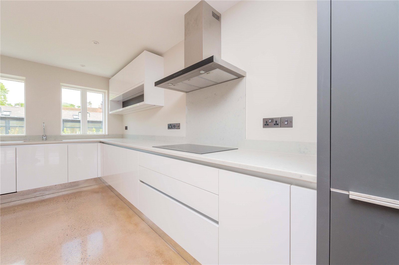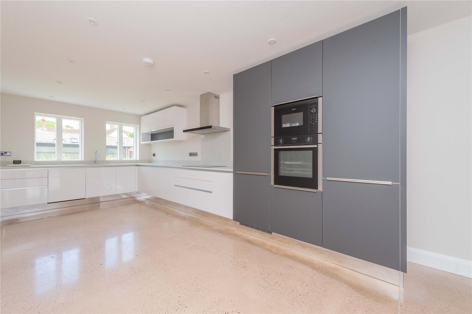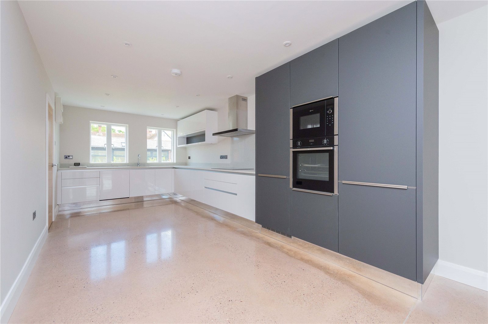 – An elegant and spacious open plan living area, including a high spec kitchen with integrated appliances (NEFF microwave, NEFF oven, Hoover fridge freezer, 4 ring Hob, NEFF dishwasher and washing machine), dining and living room with an alluring fireplace and media wall. French double doors that offer that seamless transition from the inside to the outside.
