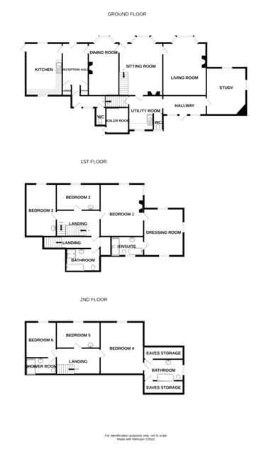 The property layout is conducive to having 4 Principle Bedrooms, with 3 having their own Dressing Rooms and En-Suites or, allowing for 6 bedrooms, with 1 as the Principle Bedroom on the 1st Floor with an En-suite and Dressing Room, with 2 more Bedrooms serviced by the Family Bathroom. On the 2nd Floor, 2 bedrooms with En-suites, and 1 without, but which could be used as a Play Room or second Study.